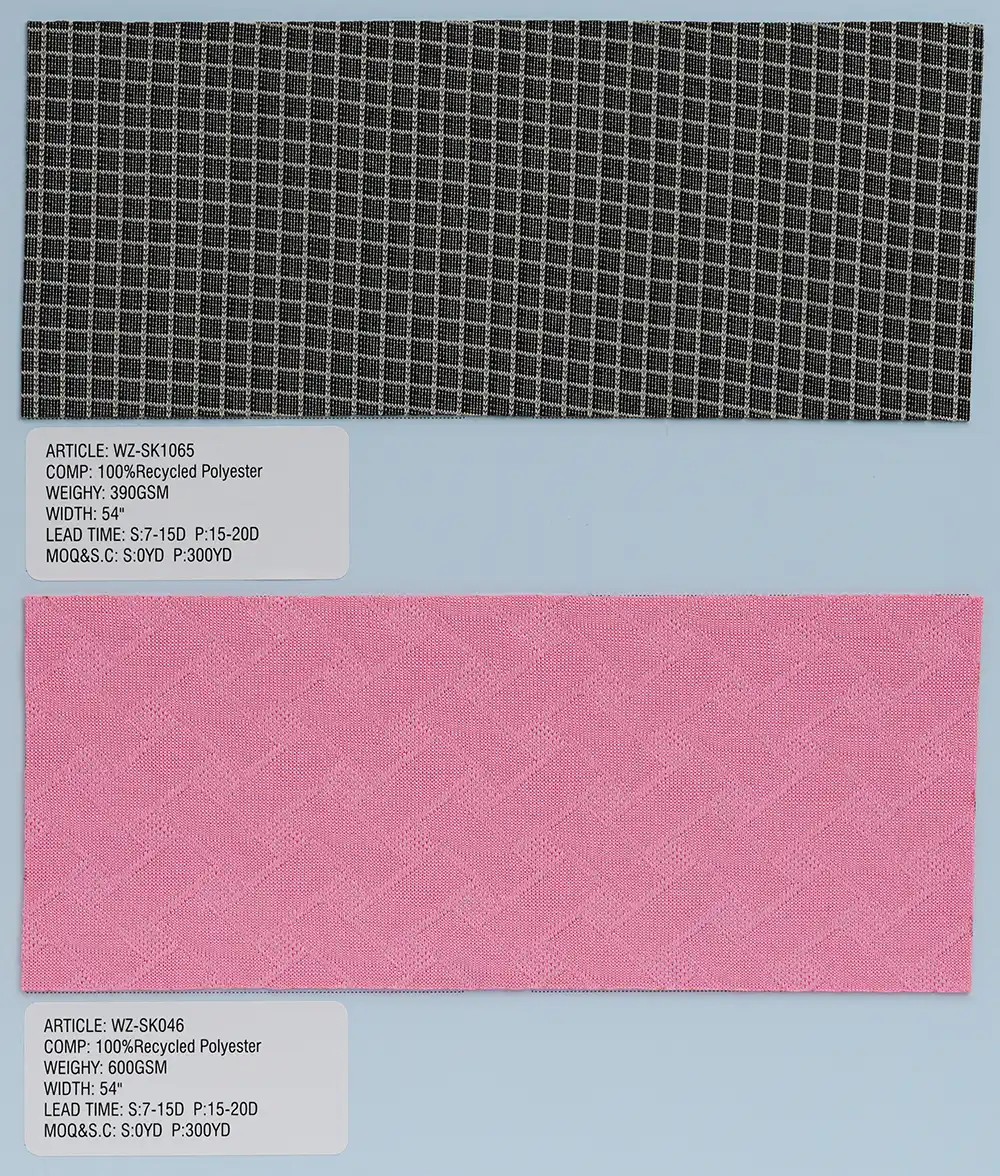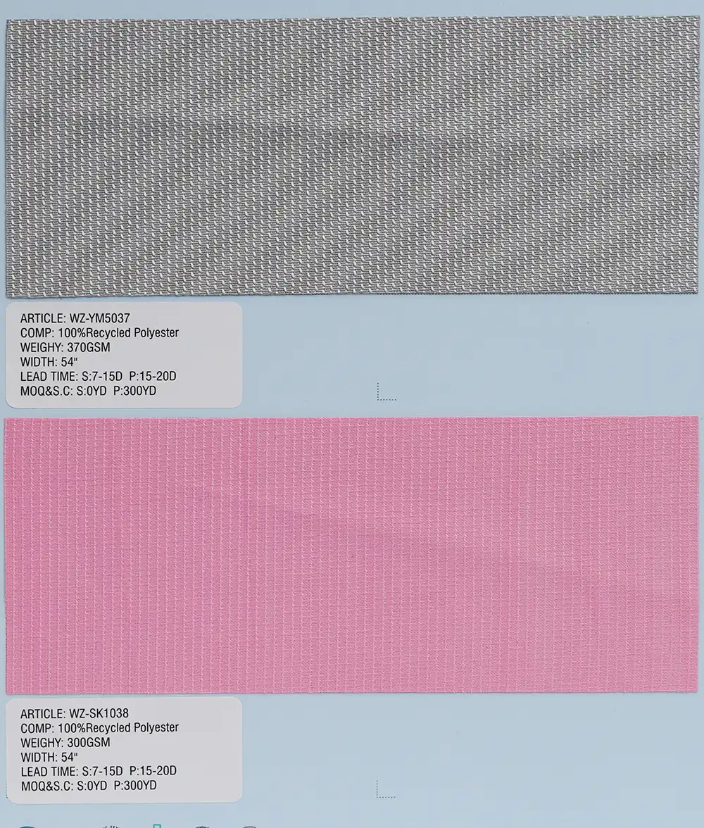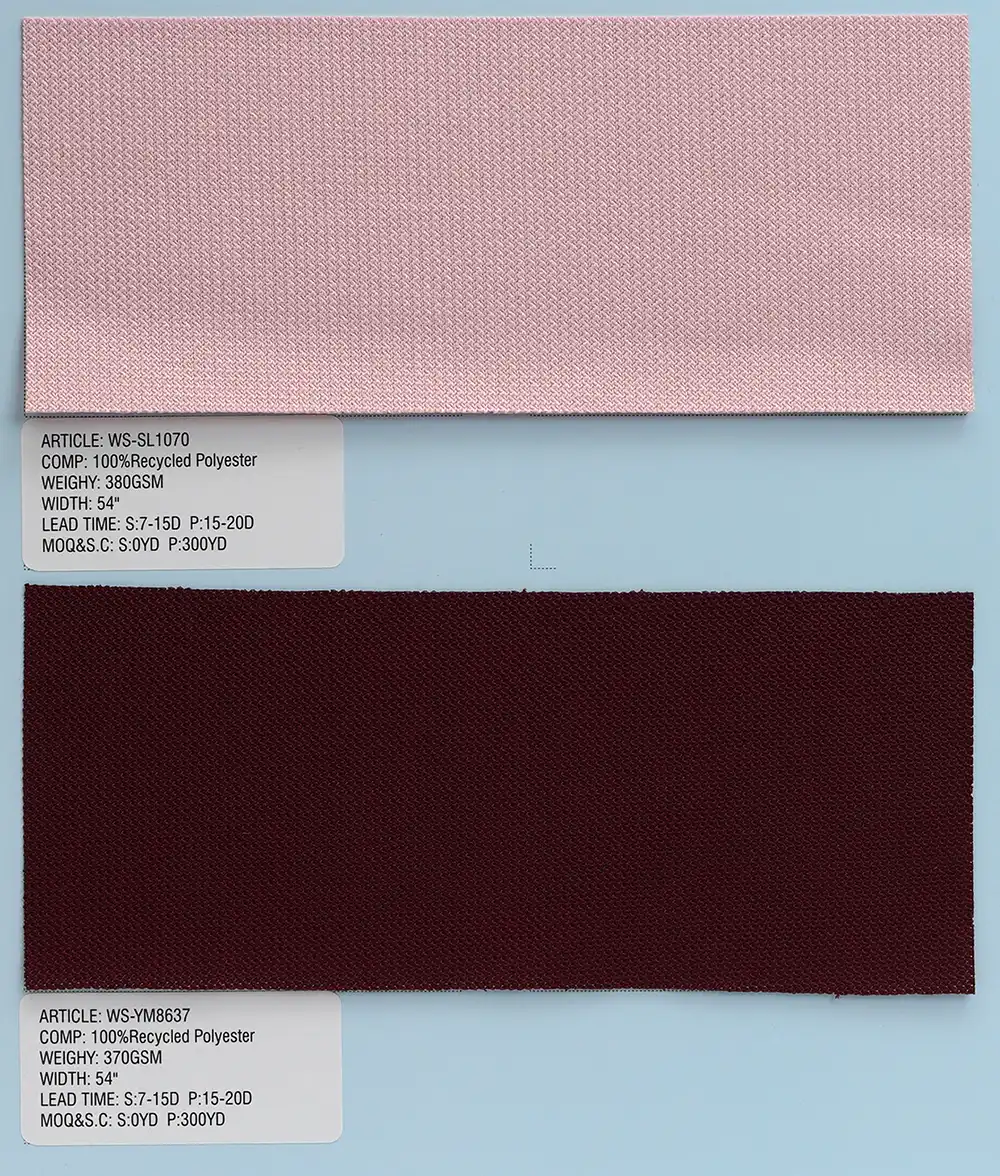 这是一种采用经编工艺制成的针织面料,主要选用100%再生聚酯纤维,也可搭配尼龙或氨纶进行生产。经编技术赋予面料结构紧密稳固,具备优异的尺寸稳定性与抗皱性能,质感持久平整