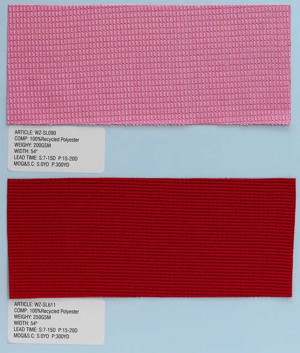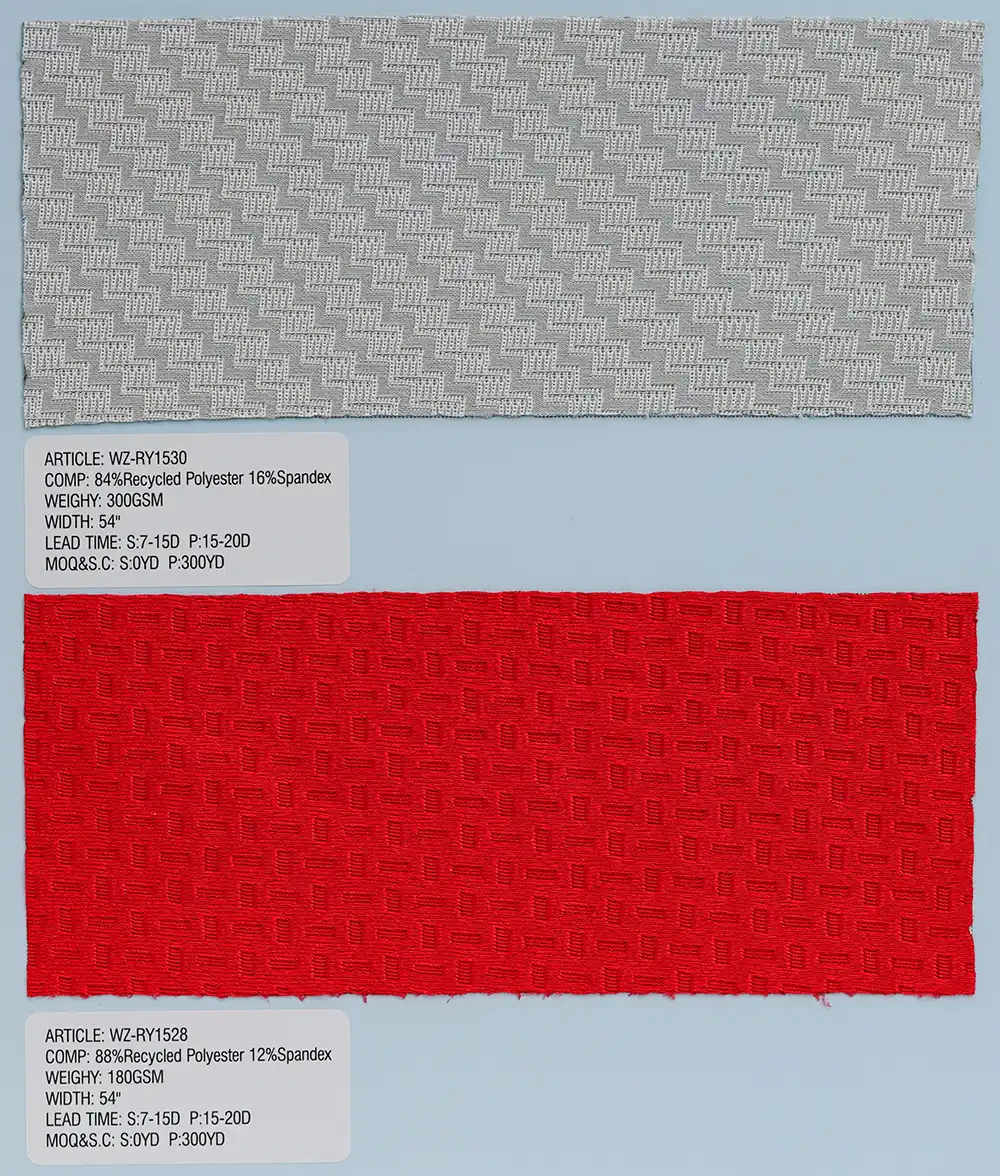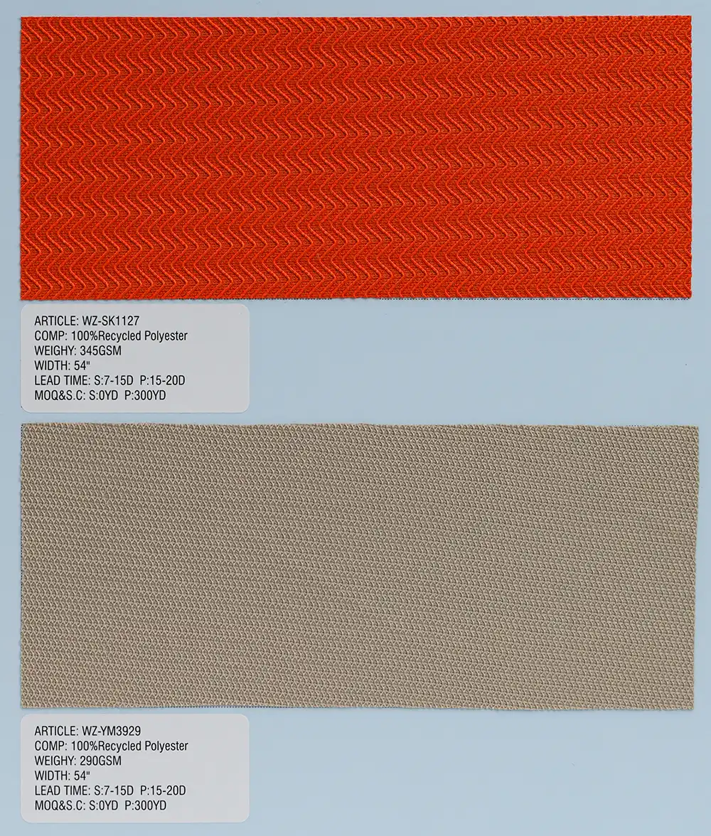 这是一种采用经编工艺制成的针织面料,主要选用100%再生聚酯纤维,也可搭配尼龙或氨纶进行生产。经编技术赋予面料结构紧密稳固,具备优异的尺寸稳定性与抗皱性能,质感持久平整