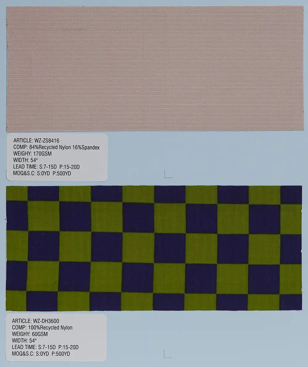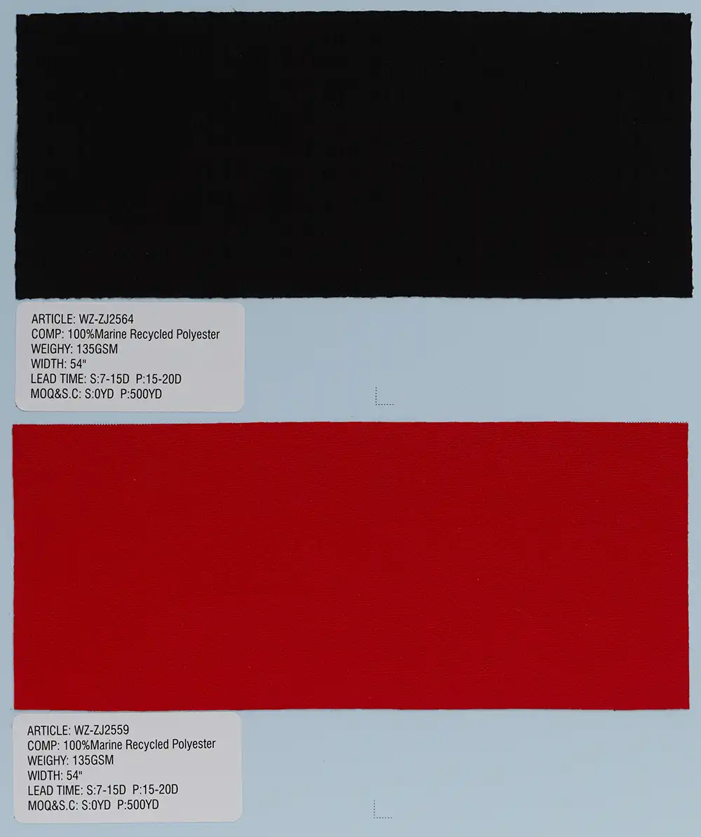 这是一种采用经编工艺制成的针织面料,主要选用100%再生聚酯纤维,也可搭配尼龙或氨纶进行生产。经编技术赋予面料结构紧密稳固,具备优异的尺寸稳定性与抗皱性能,质感持久平整